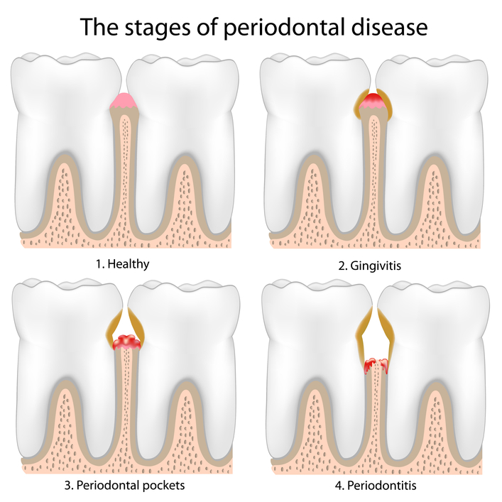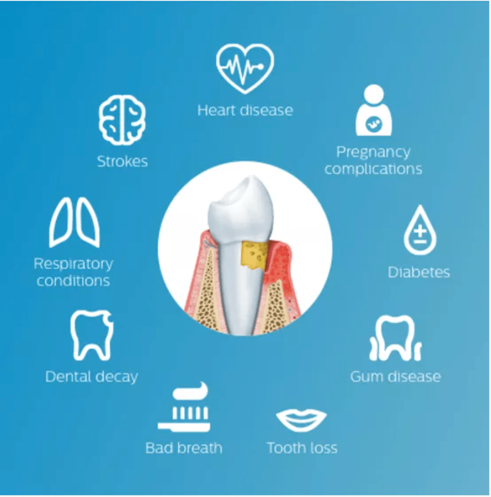 Did you ever notice that soft, mushy, yellow stuff on your teeth at the end of the day? Or maybe you forgot to brush your teeth before bed (happens to the best of us), and you notice this plaque in the morning. Over time plaque starts to harden and mineralize and the only way to get it removed is with a professional cleaning from a dentist or hygienist. However, plaque can also build up in between your teeth and below the gum line, where you can’t reach with your toothbrush. This plaque can also mineralize into tarter and calculus. Certain bacteria hide underneath these chunks of calculus, where they basically poop out acid and start dissolving your bone around your teeth and causing bad odors. Once this bone starts disappearing, there’s no way to grow it back and you start to develop periodontal disease, which is different from gingivitis, where only the gums are affected. Unlike gingivitis, periodontitis is not reversible! This bone is basically the foundation that keeps your teeth in your mouth and once you start losing the foundation, you start losing your teeth. YIKES!!!